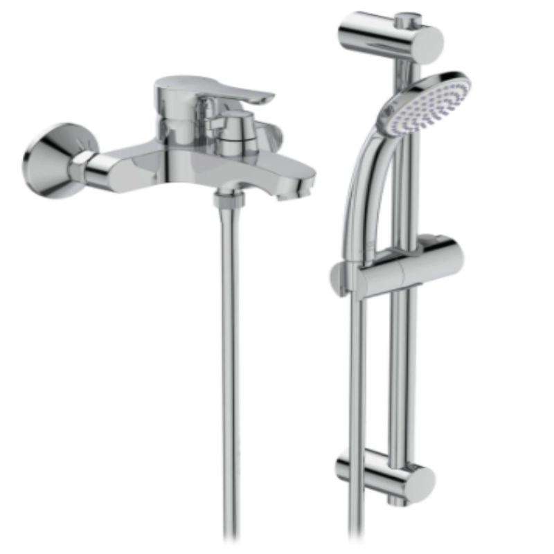 Alpha baterija za kadu set BC656AA je slavina za kadu, proizvođača Ideal Standard, klasičnog dizajna i elegancije, idealna za svako kupatilo. Lako se uklapa u svaki stil uređenja. Ova slavina za kadu je vrhunskog kvaliteta, pravljena da traje. Hromirani premaz joj daje elegantan i bleštav izgled kojim unosi svežinu i čini da prostor odiše čistoćom i otmenošću. Ima vrlo glatko telo, automatski prebacivač tuša, jednostavna je za održavanje, brzo i lako se instalira. Montira se na zid, na dva otvora. Može se koristiti i za tuš kadu. Ukoliko želite spoj modernog i elegantnog Alpha baterija za kadu set BC656AA poseduje 35 mm keramičku mješačku glavu, ručicu i crijevo za tuš, kao i šipku i zidni nosač.