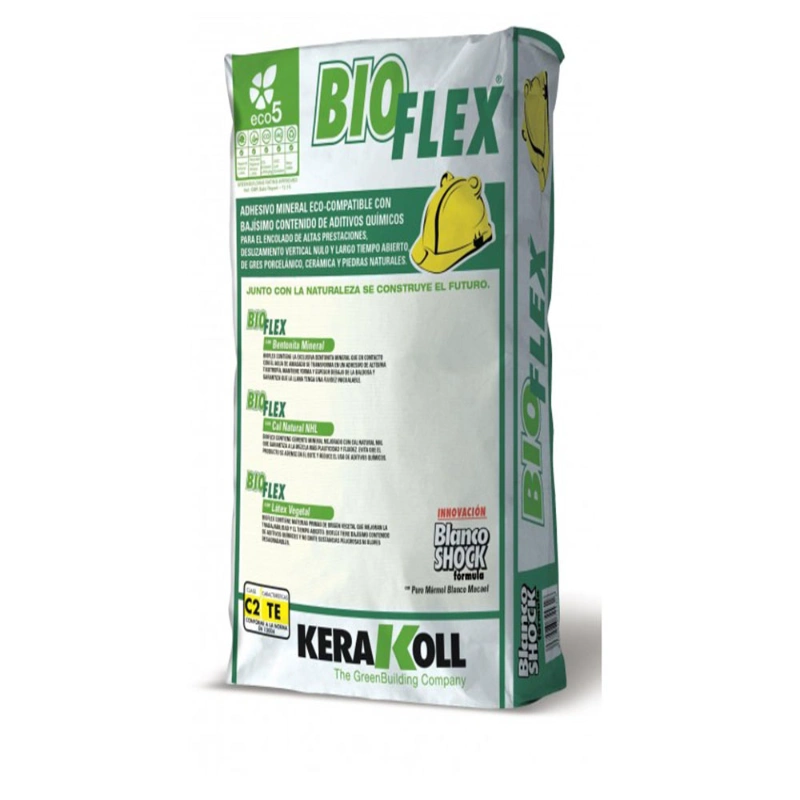 Kerakoll brend nudi ljepilo za keramiku Bioflex E bianco 25 kg (16) koje se odlikuje sposobnošcu deformacije i vrlo visokim sadržajem prirodnih aditiva, što mu omogucava visoka svojstva lijepljenja, bez okomitog proklizavanja i dugim otvorenim vremenom. Ovo ljepilo je idealno za porculanski gres, keramiku i prirodni kamen, a istovremeno je ekološki prihvatljivo. S reološkim modifikatorima nove generacije, ovaj proizvod ima produženo otvoreno vrijeme i vrlo niskog ispuštanja organskih jedinjenja, što ga cini sigurnim izborom za bilo koji gradevinski projekat.