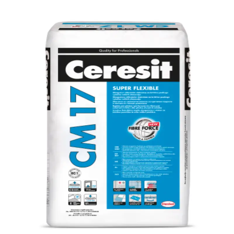 CM 17 extra flex ljepilo 25/1 je fleksibilno ljepilo obogaceno silikatnim vlaknima (Fibre Force)i idealno za vanjsku i unutrašnju upotrebu, a pogodno je za sistem plocica na plocicu. Sa svojom posebno visokom fleksibilnošcu, ovo ljepilo nudi snažno prianjanje i omogucava sušenje i vezivanje bez skupljanja. Ovo ljepilo je posebno efikasno za polaganje gres plocica, prirodnog kamena i sistema podnog grejanja, kao i za postavljanje plocica na gipsane table, suve košuljice, gips, zasicen beton i vodonepropusne slojeve (osim crne bitumenske hidroizolacije). Fleksibilno ljepilo je takode pogodno za primenu u vlažnim prostorima, kao što su kupatila, bazeni, terase, balkoni sa odgovarajucim dilatacionim spojevima, stepeništa, podno grejanje, fasade, OSB ploce i na postojecim keramickim oblogama.
