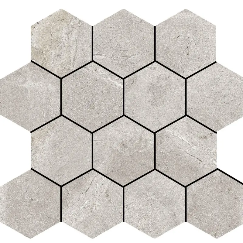 Hexa Slate White donosi moderan heksagonalni dizajn u svJetloj nijansi kamena koji unosi svežinu i vizuelnu dinamiku u prostor. Zahvaljujući svom unikatnom obliku i prirodnoj teksturi, ova pločica kombinuje estetiku rustičnog kamena sa savremenim geometrijskim izgledom.