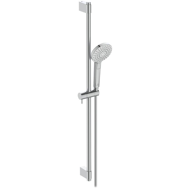 Tuš set iz serije Idealrain Evo se sastoji od klizne šipke, tuša, crijeva i zidnog nosača. Visokokvalitetan dizajn ove skupine tuševa idealan je za svakoga tko traži visokokvalitetni proizvod. Mlaznica tuša proizvodi efekat sitne kiše što djeluje relaksirajuće posle napornog dana. Ima limitator protoka vode od 8 litara po minutu.
