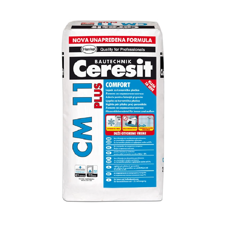 CM 11 plus comfort ljepilo visoke cvrstoce pruža izvanrednu snagu pri prianjanju keramickih plocica na razlicite vrste podloga. Ovo tankoslojno ljepilo je posebno formulirano za polaganje keramickih i gres plocica na spoljašnjim i unutrašnjim površinama. Sa maksimalnom dužinom najduže stranice plocice od 50cm, ovaj lepak se lako nanosi i idealan je za horizontalne i vertikalne površine. Otporan na smrzavanje i vlagu, ovaj lepak pruža pouzdanu zaštitu od nepovoljnih vremenskih uslova. Odlicno je obradljiv i omogucava lako i precizno polaganje plocica. Sa ekstra otpornošcu na klizanje, ovaj lepak je idealan za vece plocice i omogucava pouzdano i sigurno polaganje.