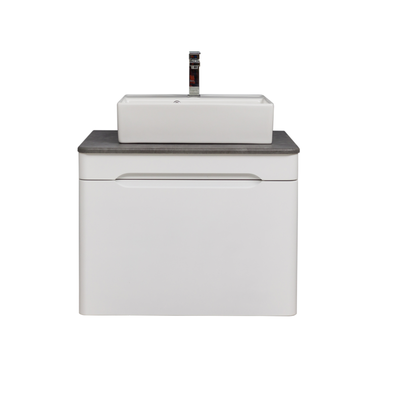 Ovaj ormarić odlikuje se visokim kvalitetom izrade i modernim dizajnom, izrađen je od kvalitetnog finog medijapana, sa mat bijelom bojom i kameno sivom gornjom pločom.