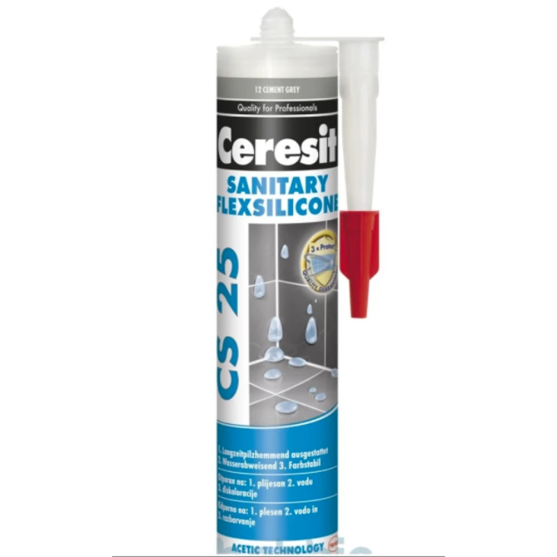 Silikon CS 25 transparentni 00 280 ml je sanitarni silikon koji se koristi za zaptivanje rubnih spojeva na zidovima i podovima, kao i za rubne spojeve sanitarija i opreme u kupatilima, kuhinjama i drugim prostorijama s povecanom vlagom. Ovaj silikon se odlicno prianja na brojne površine poput keramike, stakla, emajla, glaziranih plocica, plastike, aluminijuma i drugih materijala.