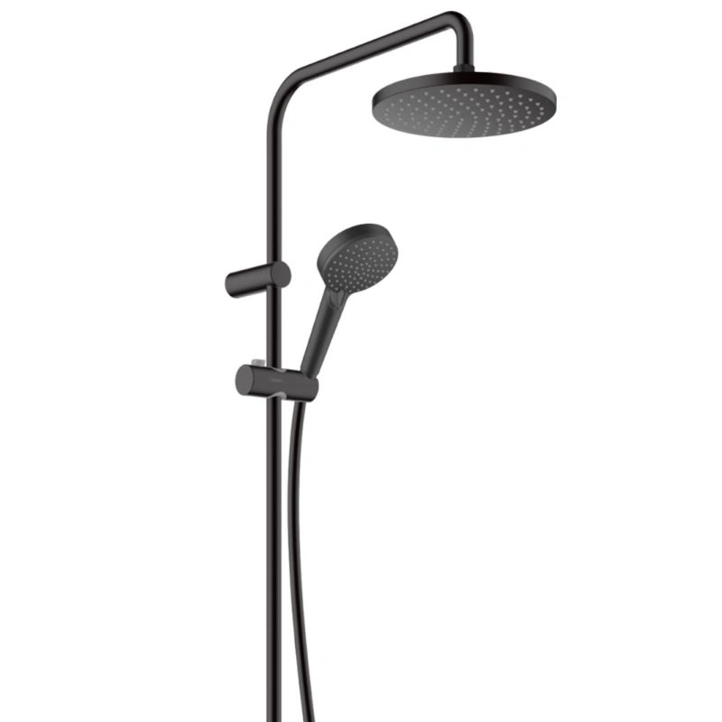 Vernis Blend showerpipe ima impresivnu veličinu glave od 20,5 cm, sa raspršivačem koji pruža opuštajući efekat kiše. Uz podesivi loptasti zglob, možete prilagoditi ugao nadglavnog tuša prema vašim željama. Ručni tuš dolazi u dva moda prskanja - Rain i IntenseRain, obezbeđujući različite načine za uživanje u tuširanju. Termostat Vernis je dizajniran sa vašom sigurnošću na umu. Sa sigurnosnim zaustavljanjem na 40°C i podesivim ograničenjem tople vode, možete biti sigurni da će temperatura biti u skladu sa vašim željama.